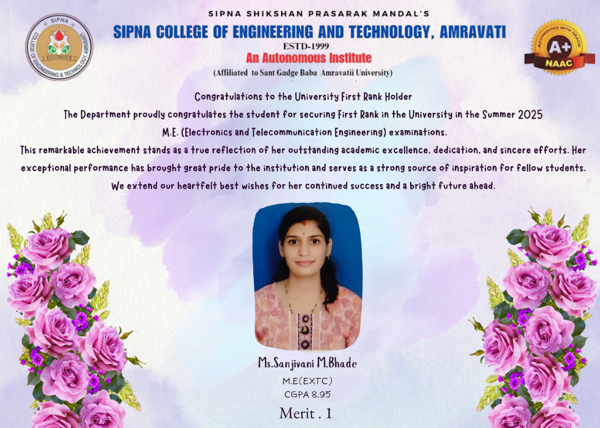 | 52 | Vaishali Mahalle | second | Paper Presentation | Sipna coet | I Winner | 2013-14 |