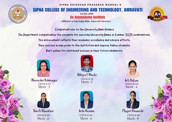 | 40 | Ku. Ankita Gajananrao Khandekar | B.E. | 9 | 2020 |