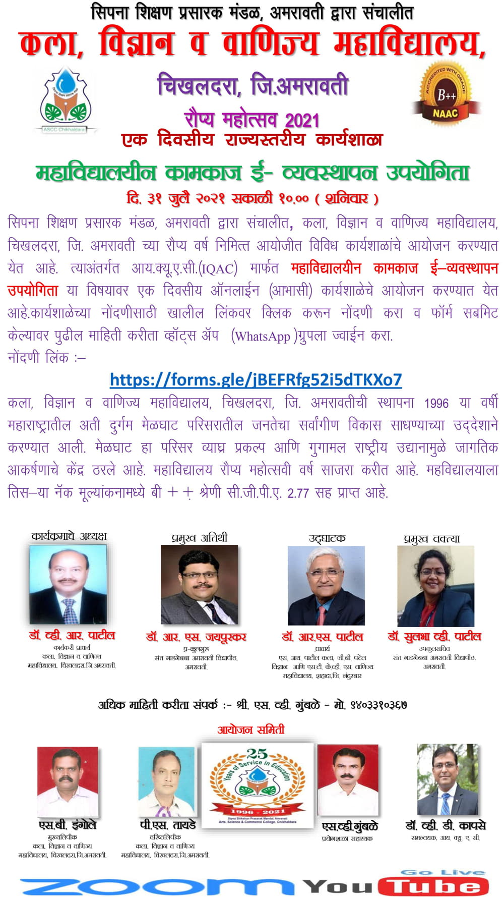 एक दिवसीय राज्यस्तरीय कार्यशाळा ” महाविद्यालयीन कामकाज ई-व्यवस्थापन उपयोगिता”