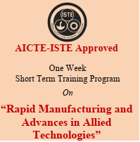 AICTE-ISTE Approved One Week Short Term Training Program On “Rapid Manufacturing and Advanceses in Allied Technologies”