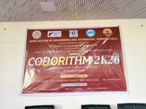 - “Codorithm -2K26: A National-Level Coding Competition” organized by Prof. Sakshi S.Deshmukh, Prof. Divya D. Gorde, and Prof. Nikhil E. Karale for all Engineering, Polytechnic, BSc, MCA, BCA, CBSE School students on 16/03/2025.